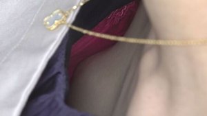幸運をもたらす四つ葉のクローバー型ペンダント越しに拝めた幸運の胸チラ盗撮