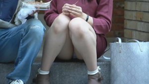 大阪観光でイチャつきながらたこ焼き頬張るバカップルの無防備パンチラをパシャリ!!!
