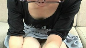 パートの童顔巨乳人妻の胸元と股間のガードは