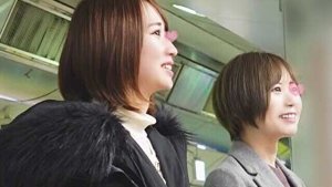 坂道OG似マンコ2人組に迫る電車痴漢師の魔の手