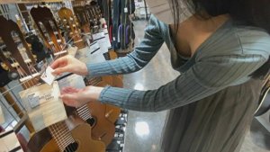 コロナで需要が伸びて大忙しの楽器店店員胸チラ盗撮