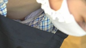 父の日の贈り物作りに夢中で無防備な胸元捉えた乳の日胸チラ盗撮