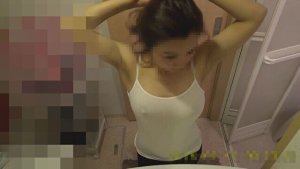 ノーブラキャミソールで乳首透かせ浮かせる美巨乳ギャル民泊脱衣場盗撮