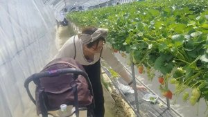 イチゴ狩り胸チラで乳首丸見え妻