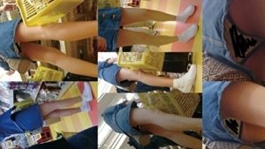 スーパーでお買い物中のスーパー丈短いデニムミニスカパンチラ盗撮