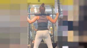 セレブ奥様の超パッツン美尻!スケベなピーマン尻をガニ股で突きだしケツの締まりまでアピールして男を誘惑!下品なレギンス 奥様編