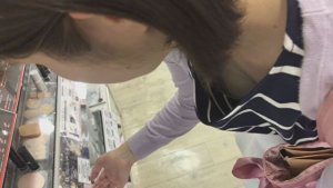 コスメ選びに夢中で無防備な胸チラ盗撮