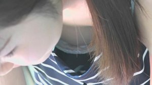 タンクトップの胸元からバストトップが丸見えな胸チラ盗撮