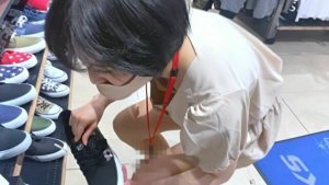 スポーツ用品店の健康的なボーイッシュ店員さんの胸チラ盗撮
