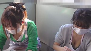 ハミ出る乳肉とマン肉見比べながら抜き比べたくなる巨乳女子W胸チラ&パンチラ盗撮