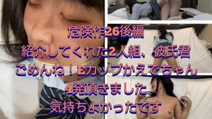 【危険作26後編】紹介してくれた友達2人組!彼氏君!ごめんね!Eカップ美乳のかえでちゃん気持ちよくて4発出しちゃいました!